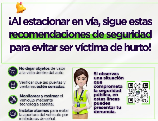 Si vas a estacionar en vía, ten en cuenta estas recomendaciones de seguridad para proteger tu vehículo y evitar ser víctima de hurto.